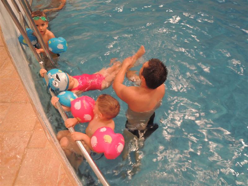Pe afişe scrie vârsta minimă 5 ani, însă primeşte şi copii mai mici dacă nu plâng fără voi şi au puţină disciplină, să respecte când li se spune să facă duş, să stea cuminţi şi să nu se aventureze de lângă el, să nu alerge în jurul bazinului etc. Şi apropo de disciplină, toţi copiii ieşeau din apă în timpul lecţiei şi se duceau la toaletă să facă pipi, deci nici vorbă de apă contaminată cu urină.