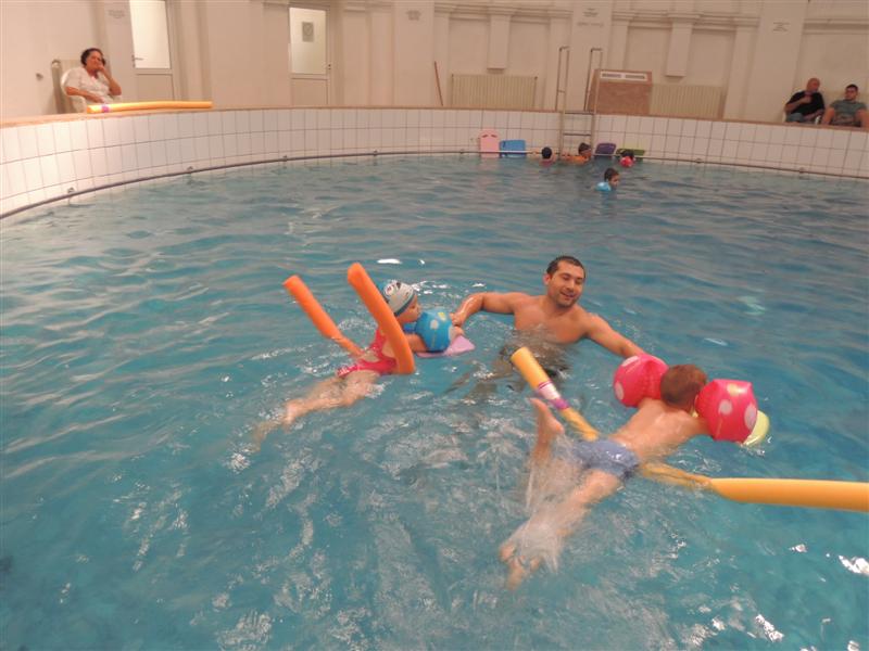 În încheiere, e un exerciţiu care pare un joculeţ, îi ia pe fiecare în braţe şi îi învârte, iar pe cei mai măricei îi aruncă în apă. Toţi copiii au părut foarte amuzaţi de joculeţ, niciunul nu protesta, ba se vedea că abia aşteaptă acest moment.